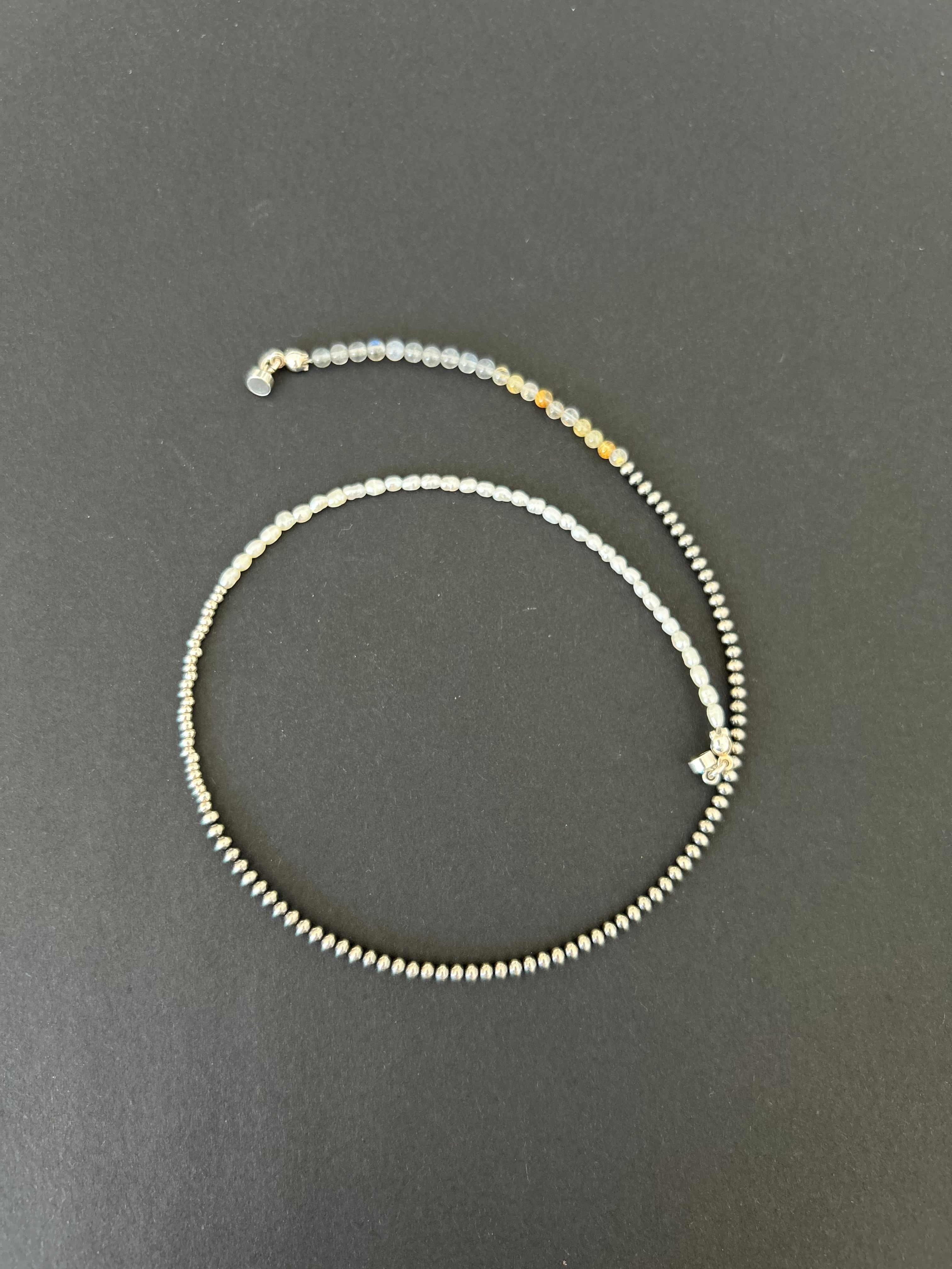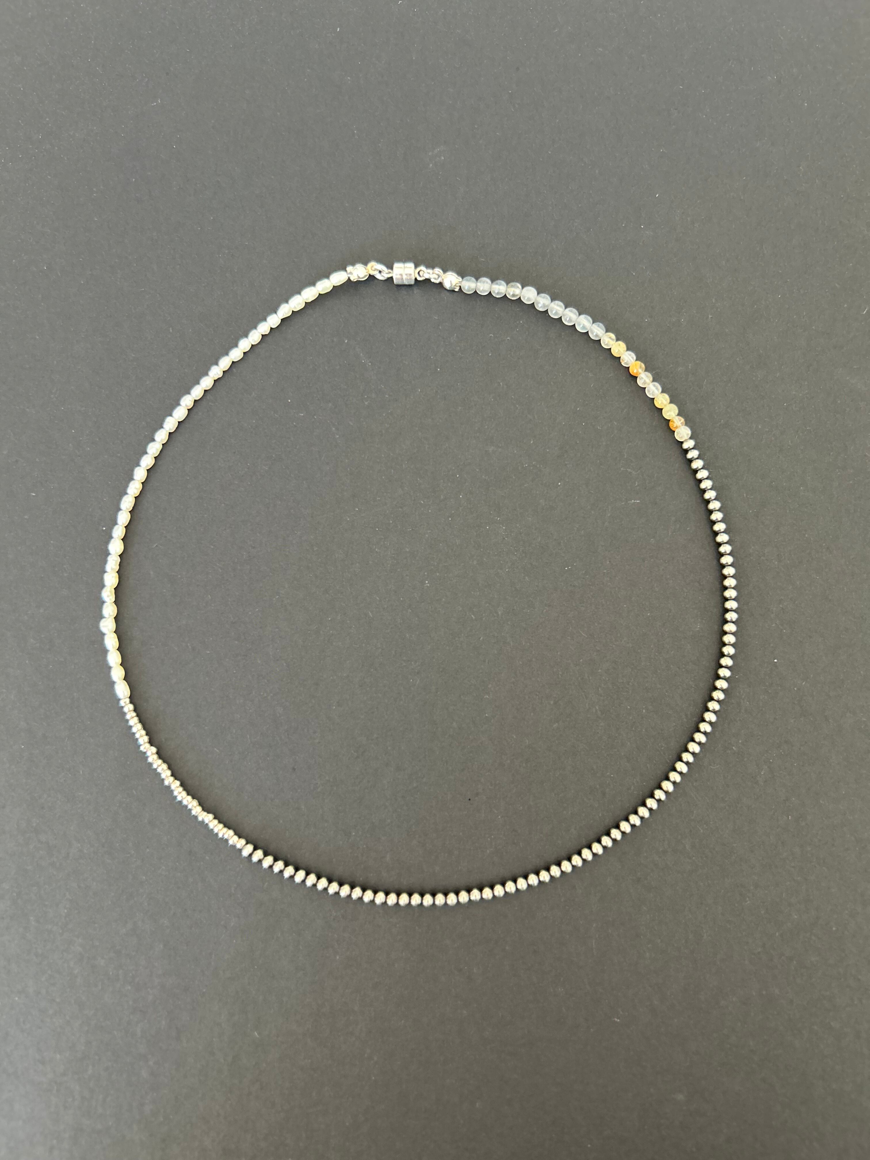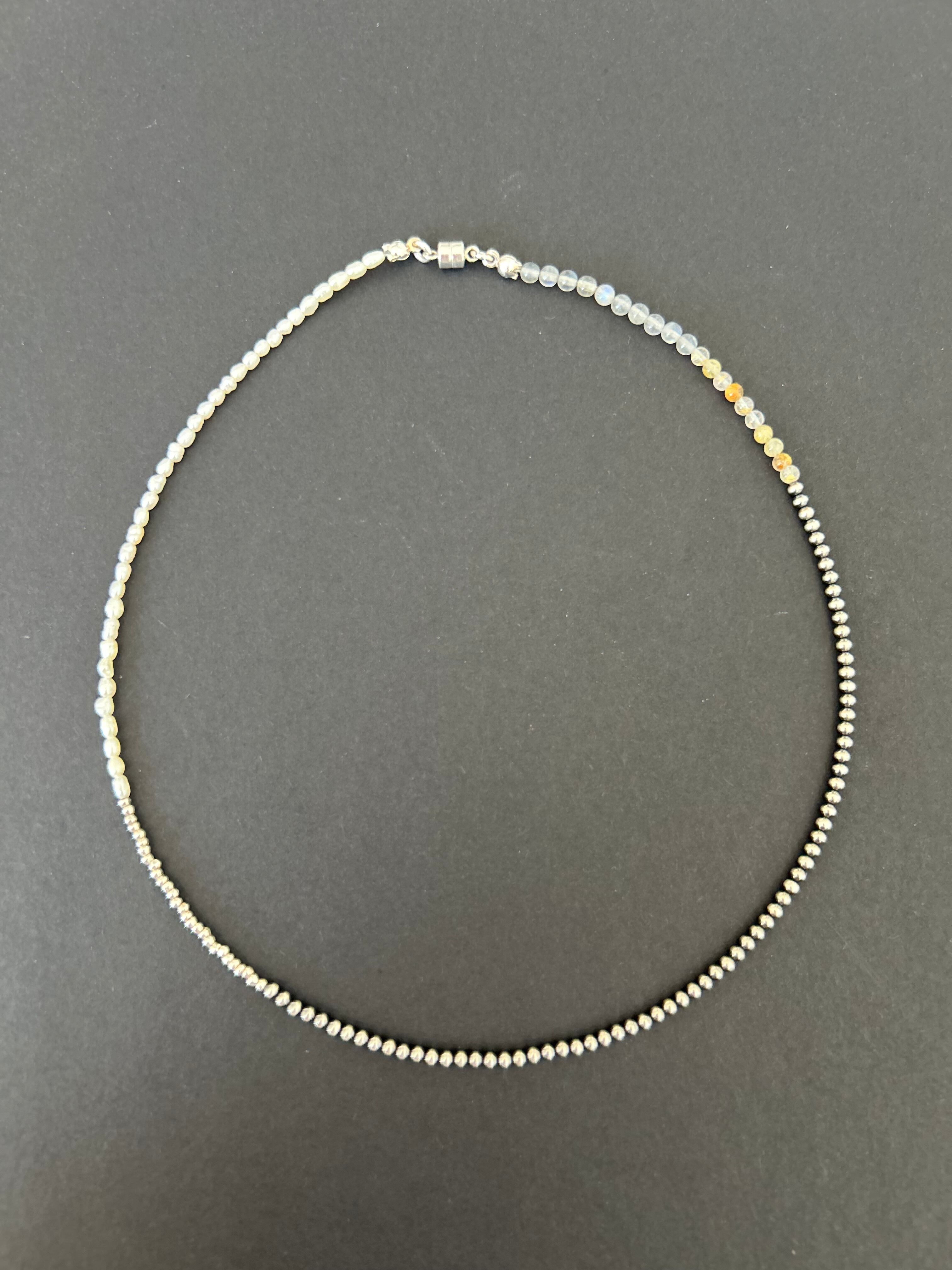 【約40cm】ルチルクォーツとラブラドライト ナバホパールネックレス カレンシルバーとケシパール