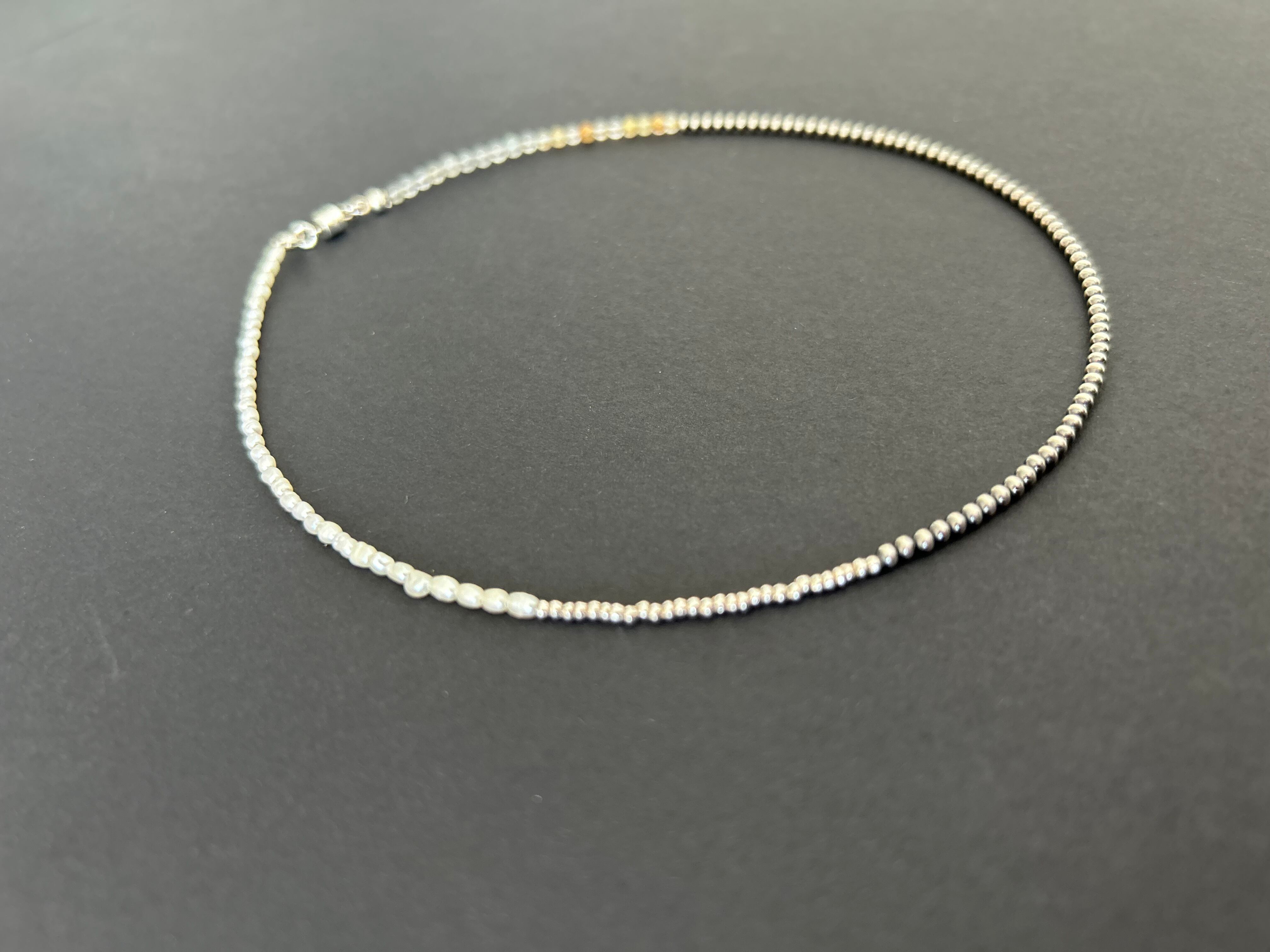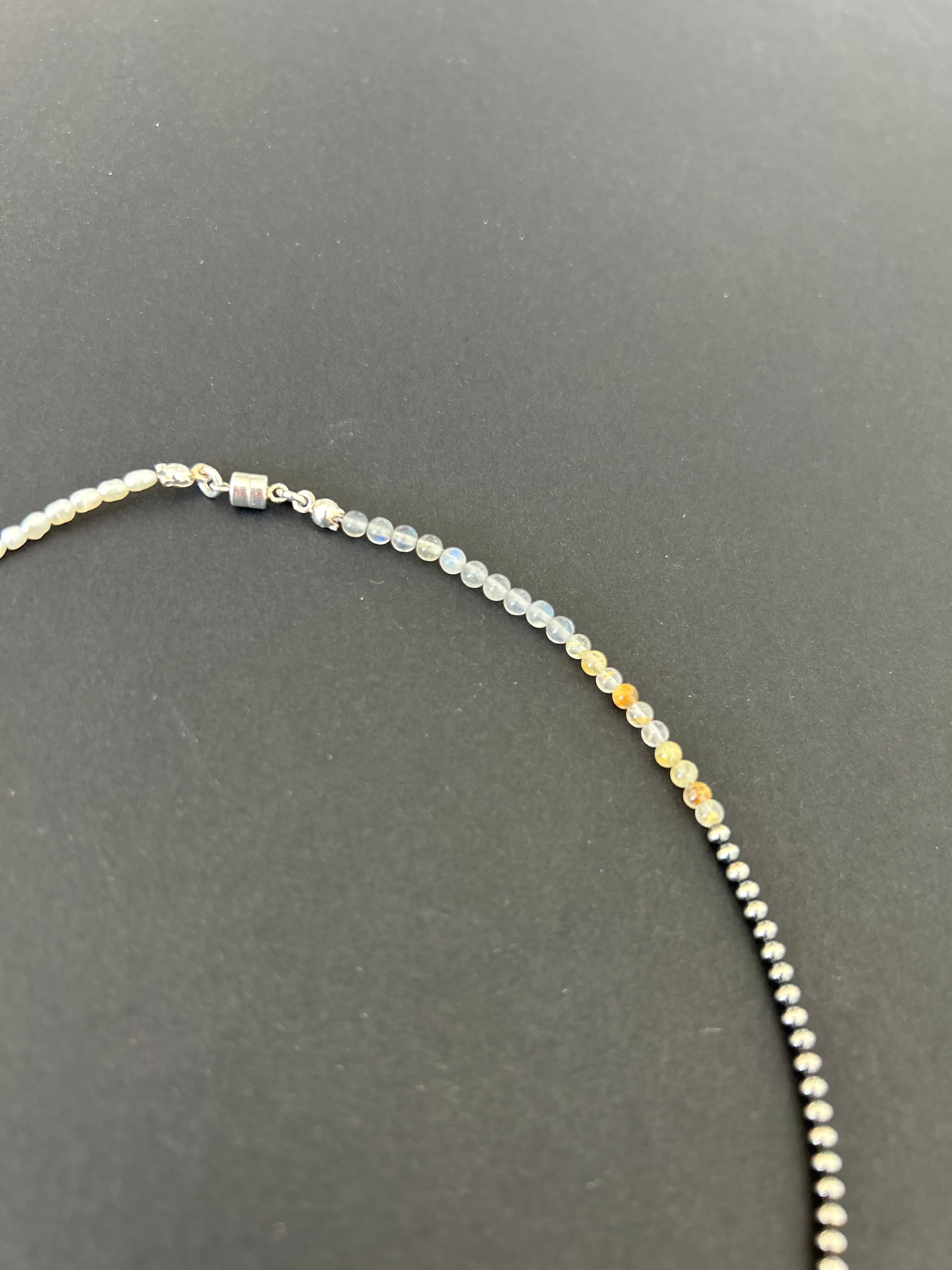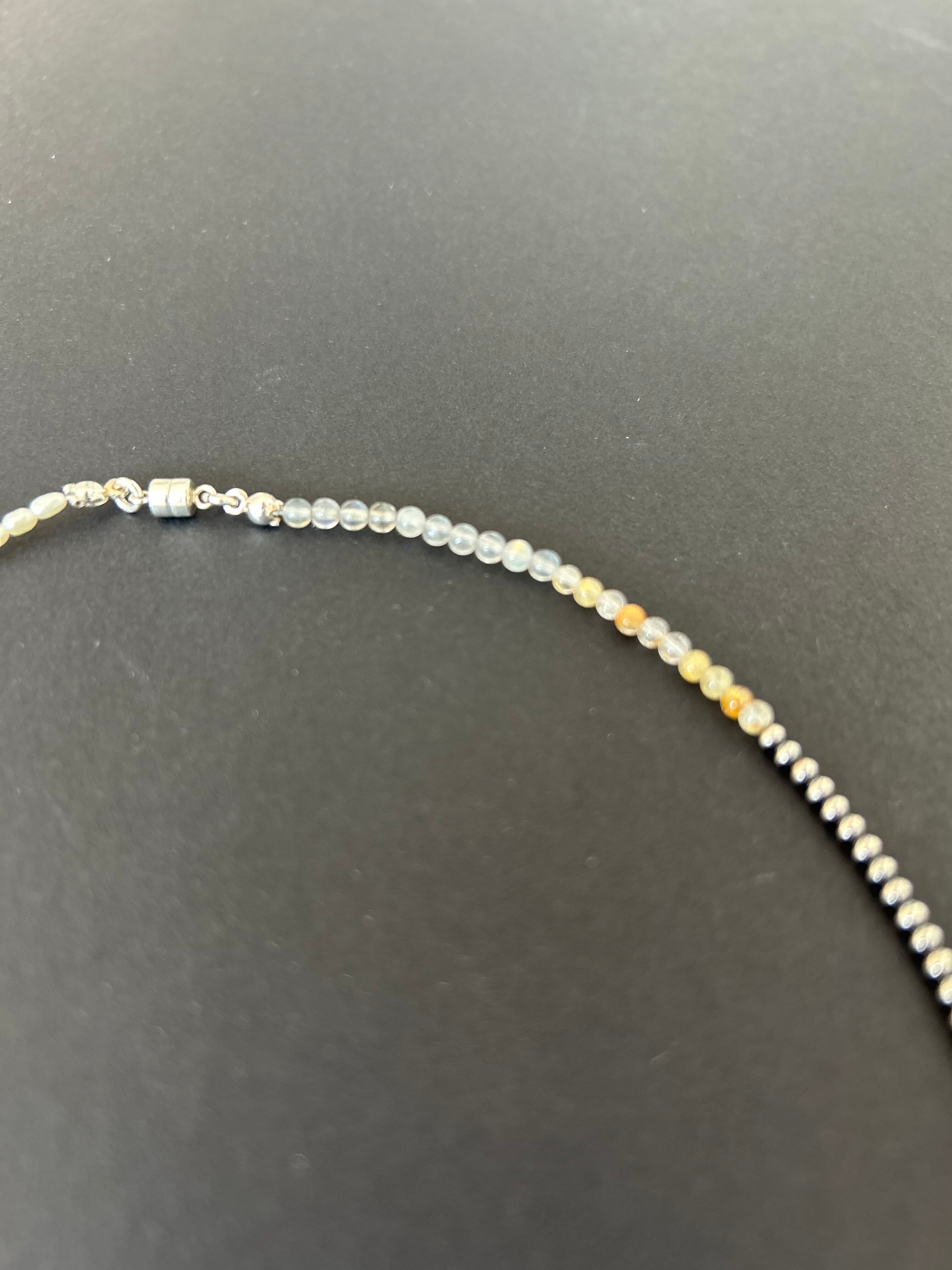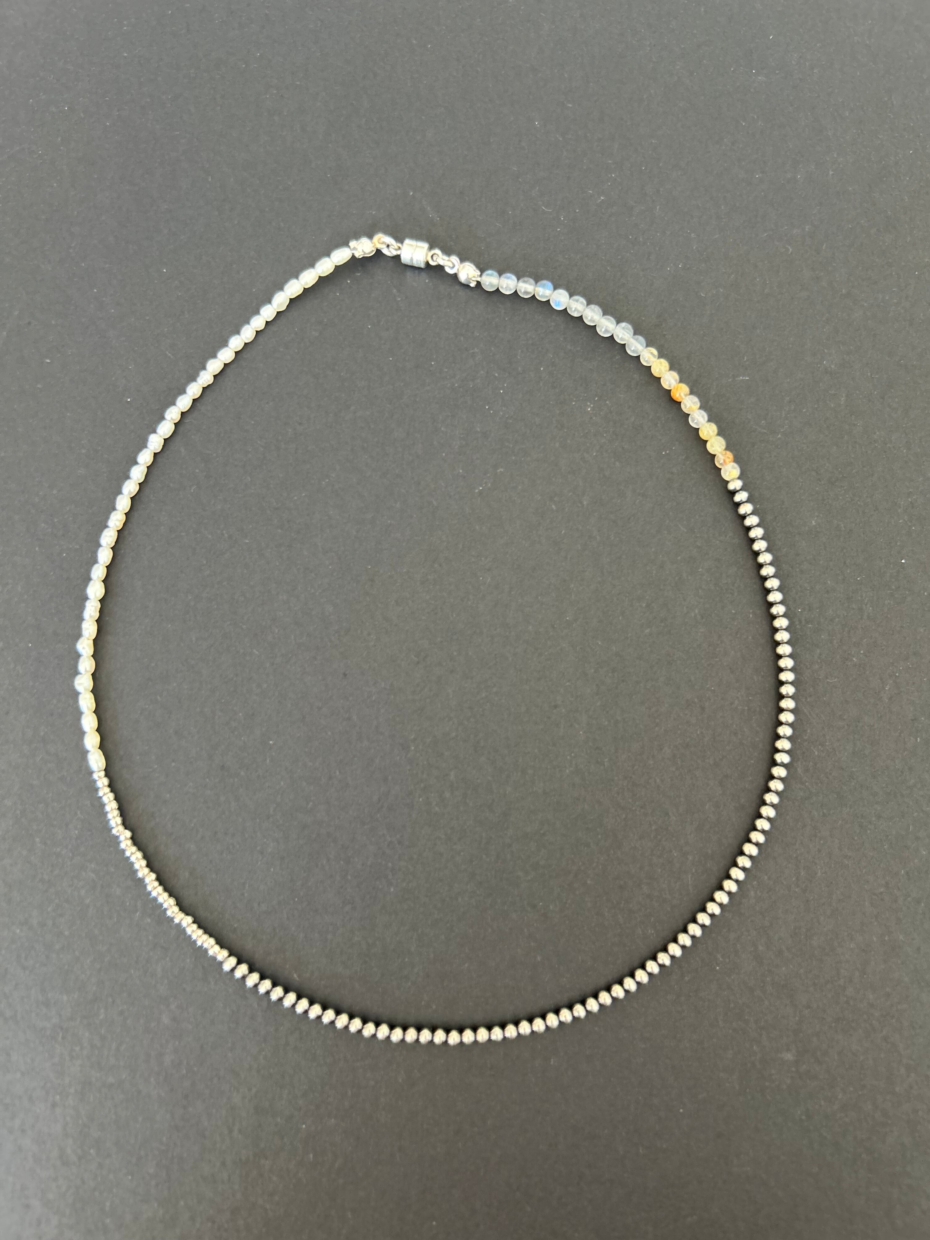 【約40cm】ルチルクォーツとラブラドライト ナバホパールネックレス カレンシルバーとケシパール