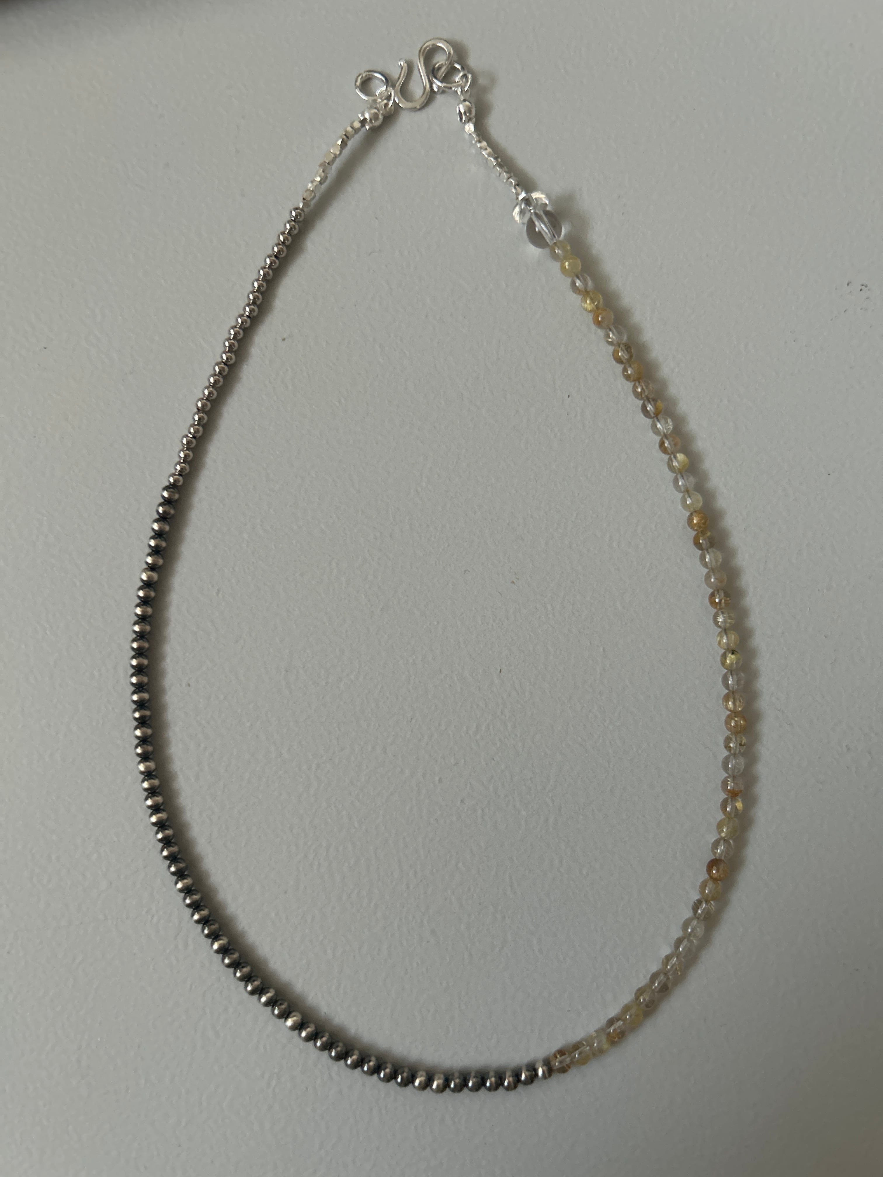 ☆41cm 小粒ルチルがきらっと光る 水晶2粒 ナバホパールネックレス