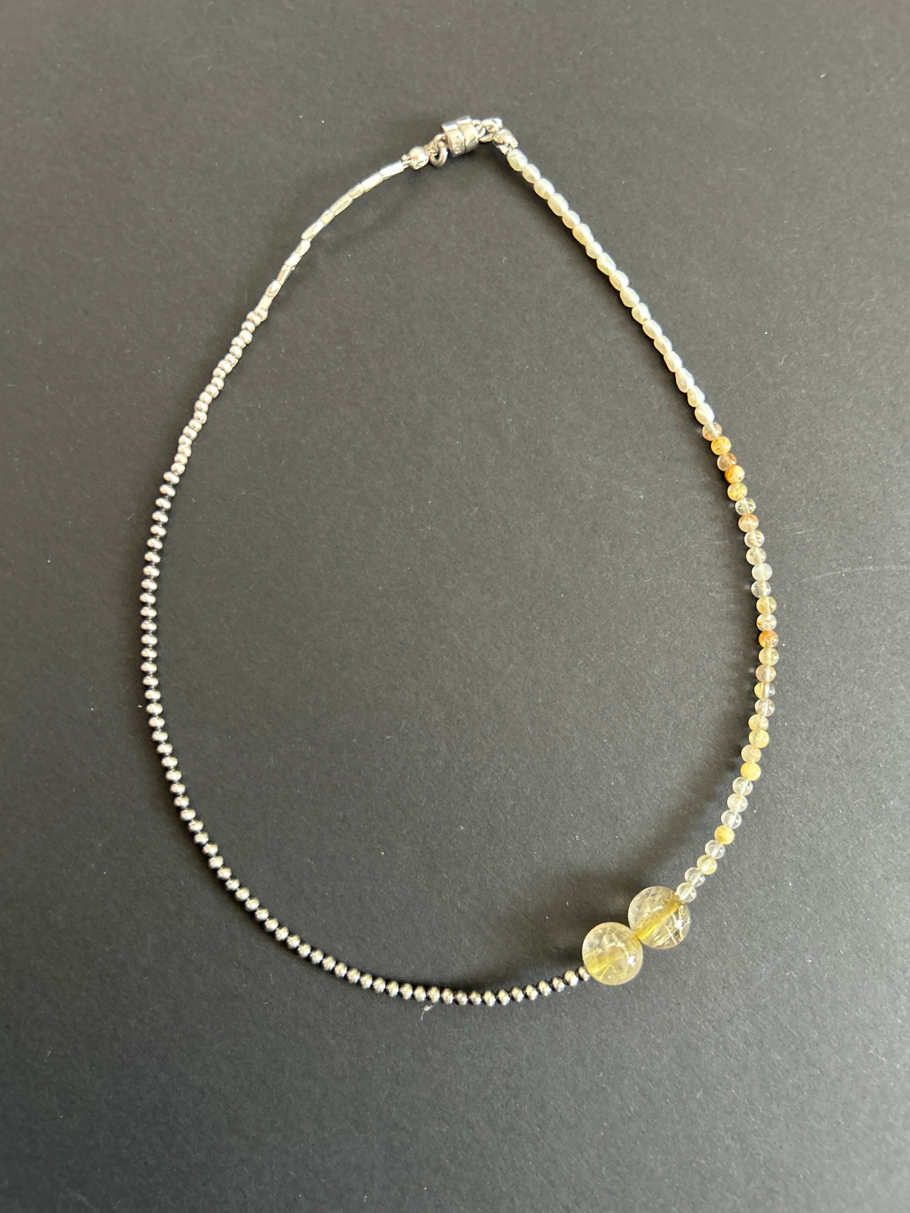 38.5cm ケシパールと大粒ルチルクォーツ ナバホパールネックレス