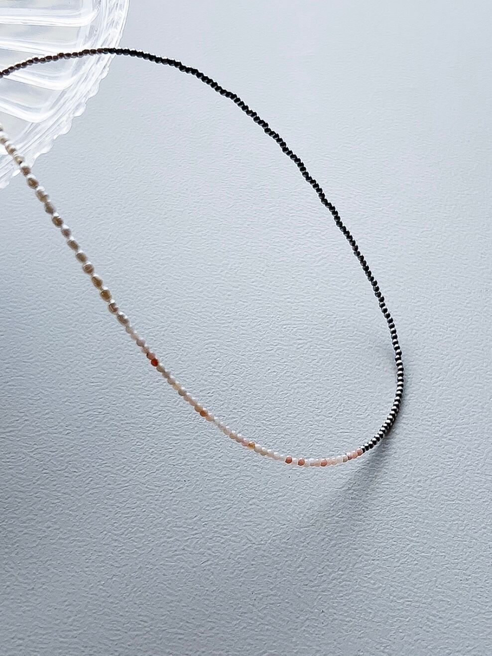 シンプルに一連で楽しむのはもちろん、他のネックレスとの重ねづけにも映えるデザインです。