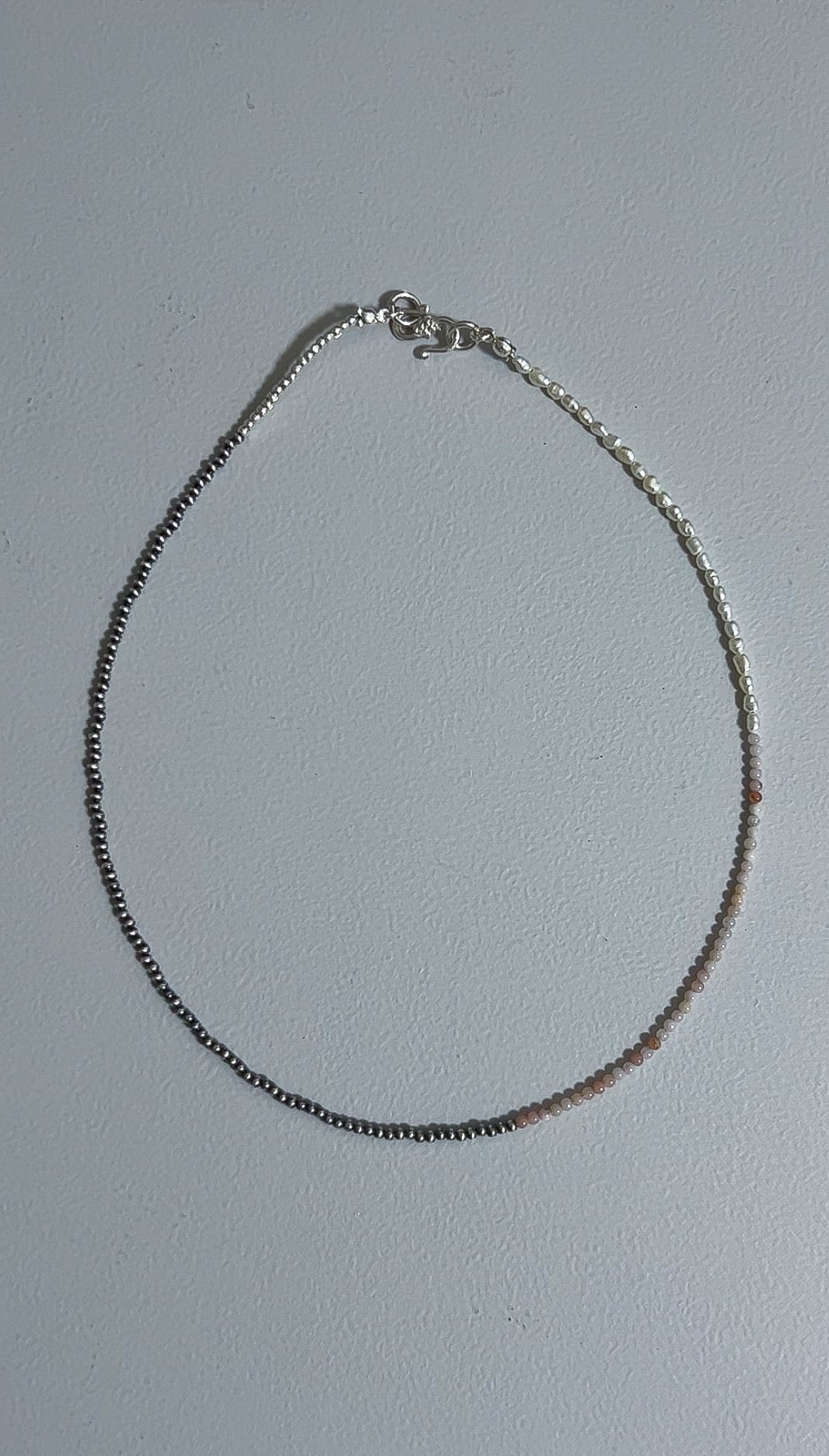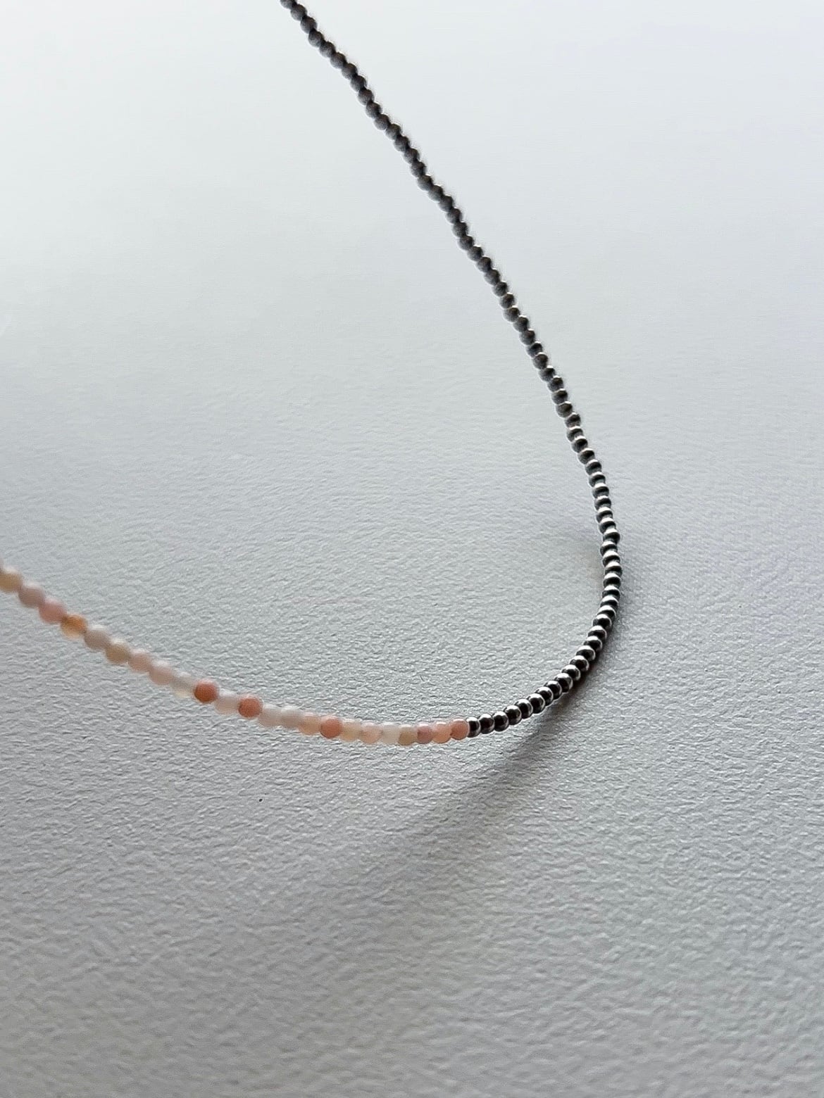 可憐なピンクオパールに、2mmナバホパールとケシパールを組み合わせました。