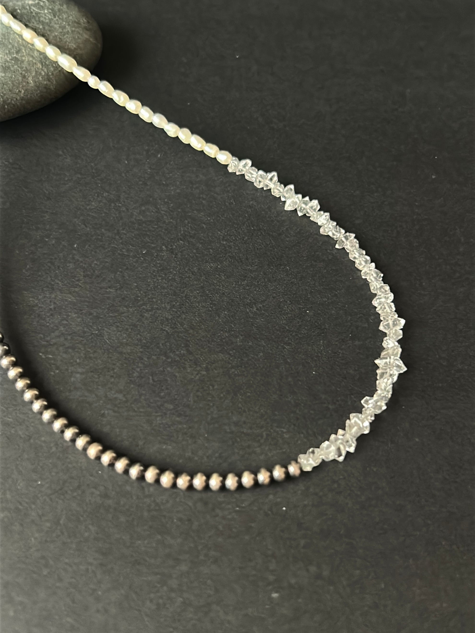 ☆43cm 輝きをまとう ハーキマーダイヤモンド × ケシパール ナバホパールネックレス