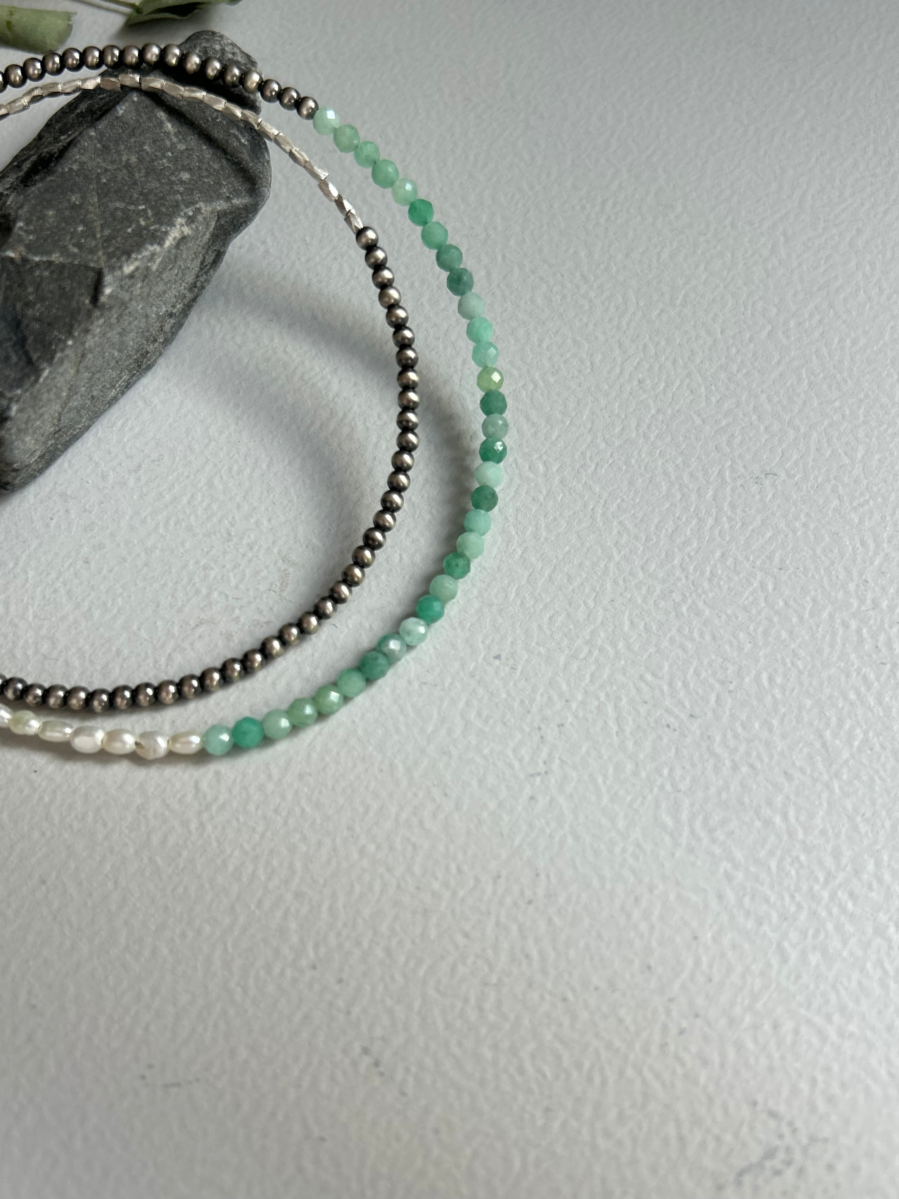 2mmナバホパールに、エメラルドビーズとケシパールを組み合わせた