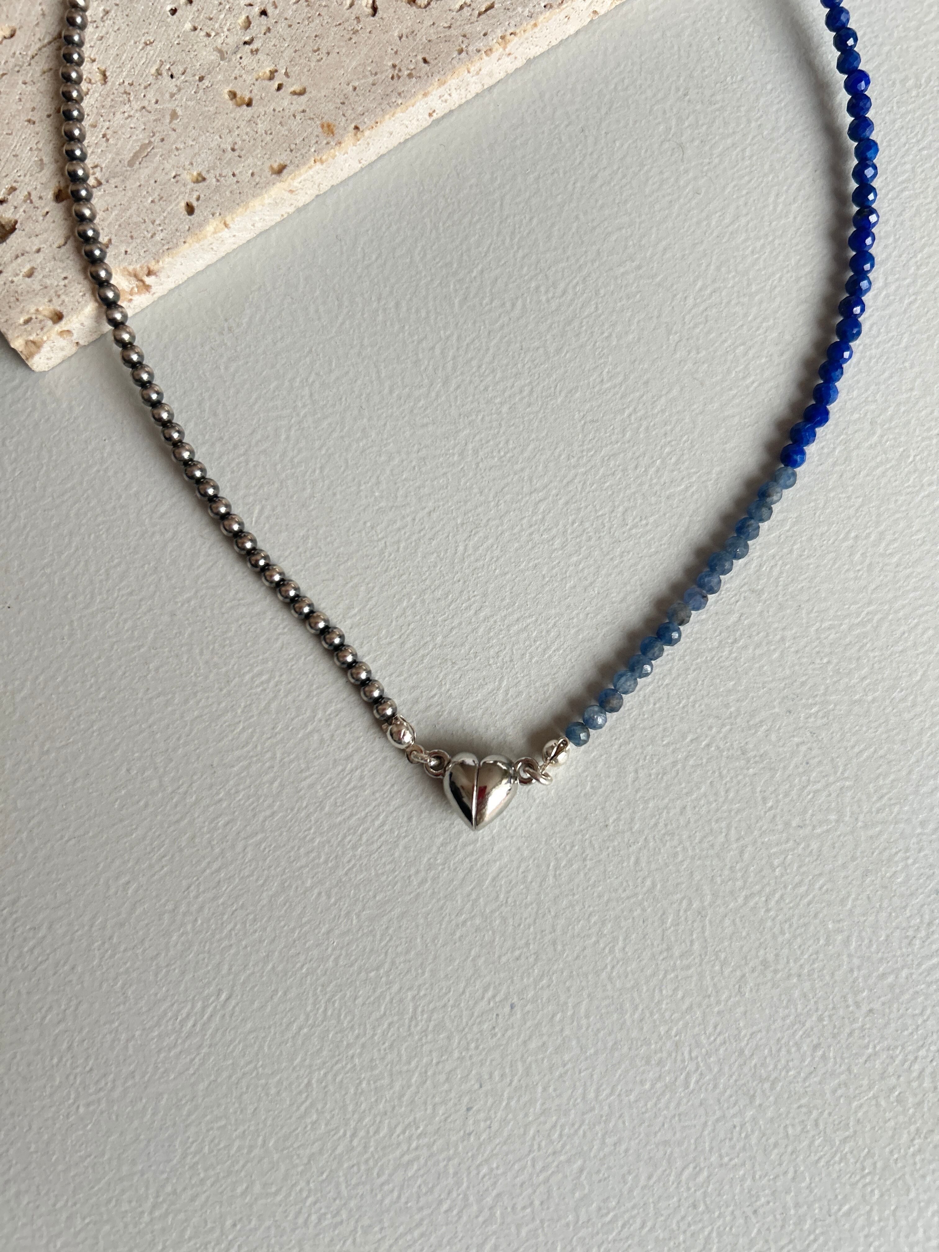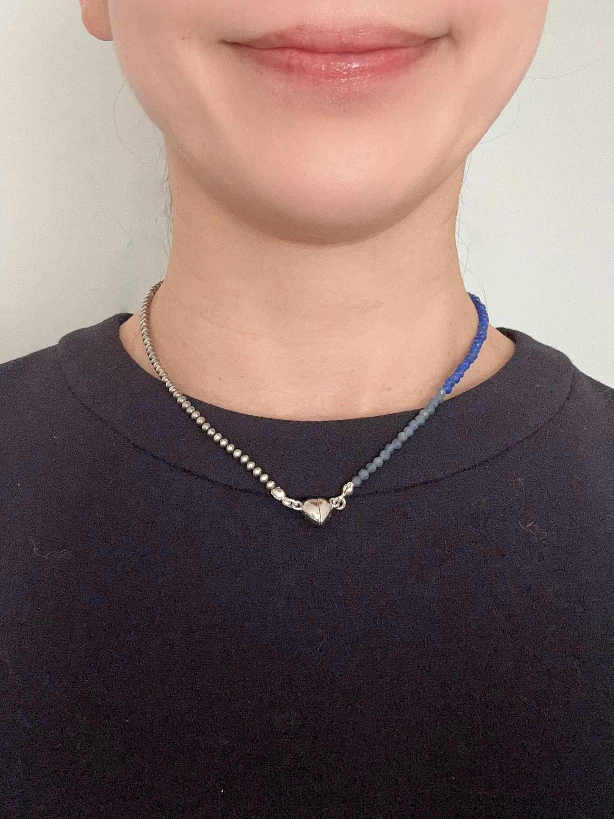 40.5cm ラピスラズリ×サファイア× ナバホパールネックレス